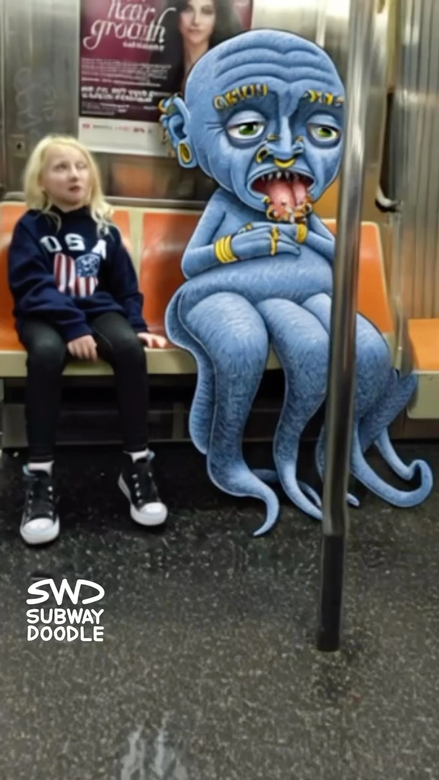 Subway Doodle has carved a distinctive niche in contemporary street art through his simple methodology: photographing ordinary commuters and digitally superimposing vibrant, blue monsters that interact with human subjects in humorous and sometimes poignant ways. His artwork creates stories that reveal the fantastical potential humming beneath everyday reality.
